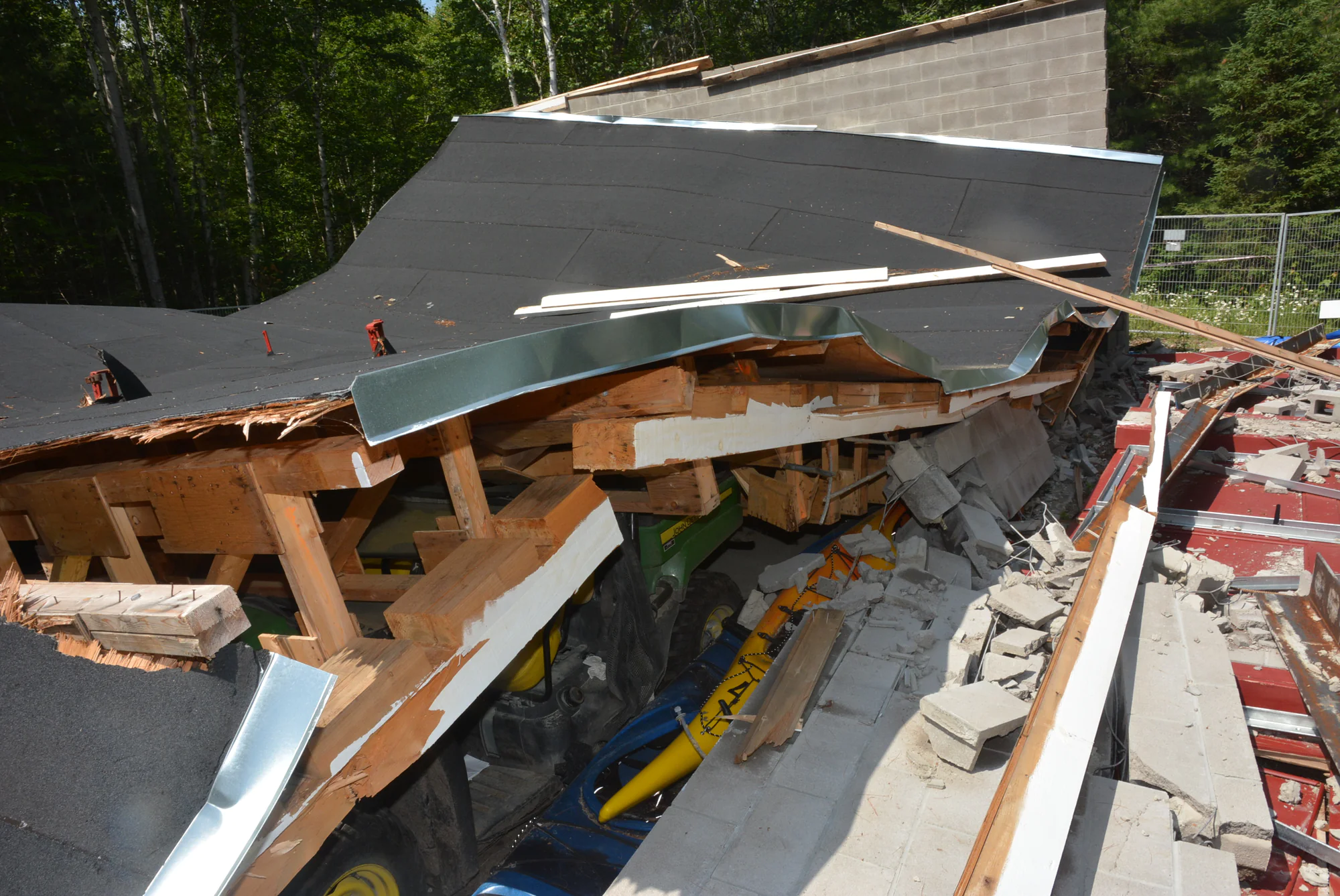 Différents mécanismes peuvent provoquer l’effondrement d’une toiture constituée de fermes de toit préfabriquées. Voici brièvement les trois principaux mécanismes d’effondrement qu’il est possible d’observer et les causes qui peuvent expliquer ces derniers.