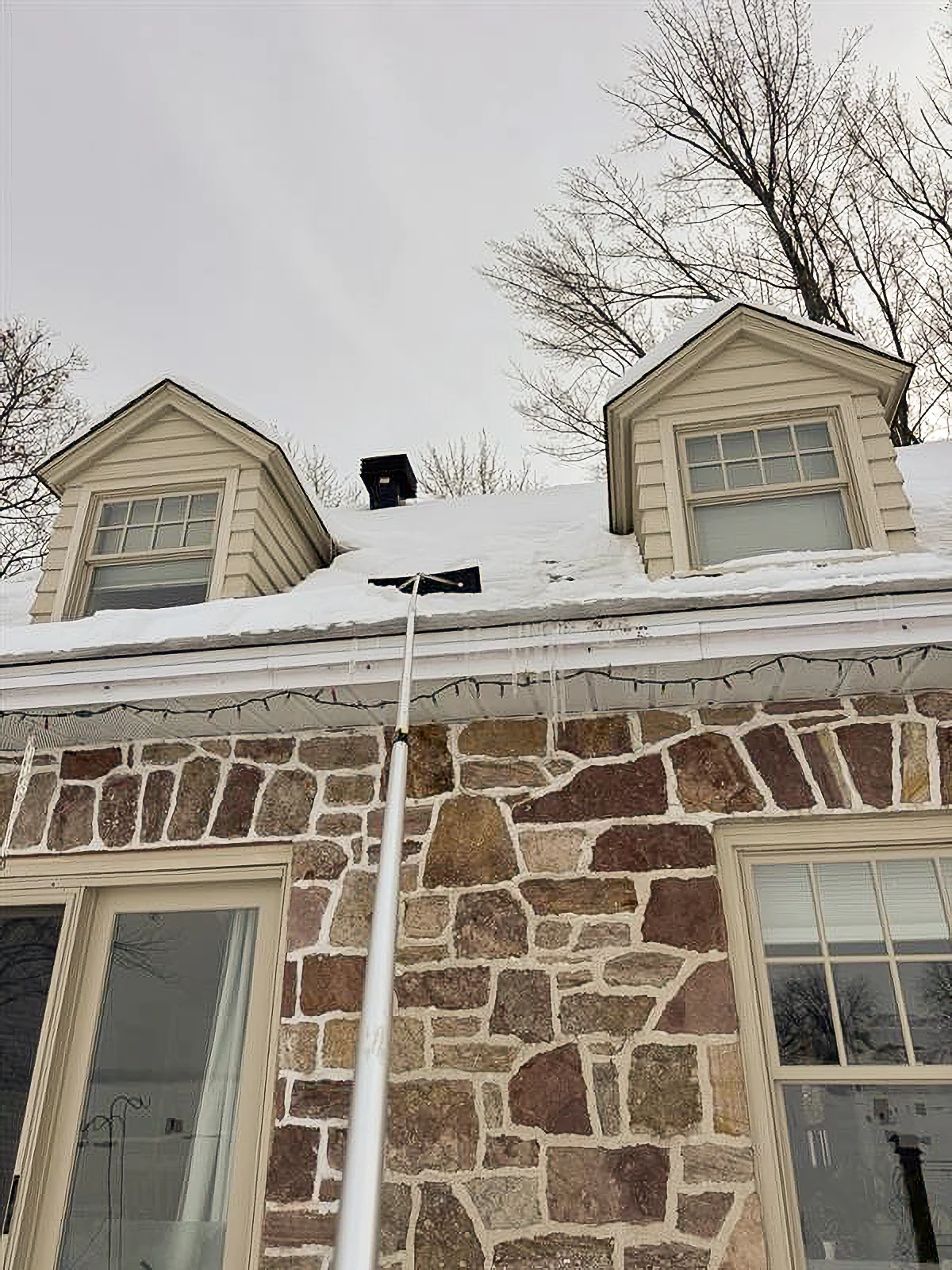 C’est pourquoi, en pratique, lorsque la neige observée sur un toit est dense, humide ou tassée, il est raisonnable de commencer à en envisager le déneigement. Pour notre maison de Saint-Laurent, ce serait bien avant d’atteindre les 17 à 20 po correspondant à la charge de conception prévue par le Code national du bâtiment. Un seuil préventif de l’ordre de 12 à 15 po (30 à 40 cm) de neige dense constitue souvent un signal sérieux pour intervenir, surtout si des redoux ou de la pluie sont annoncés dans les prochains jours.